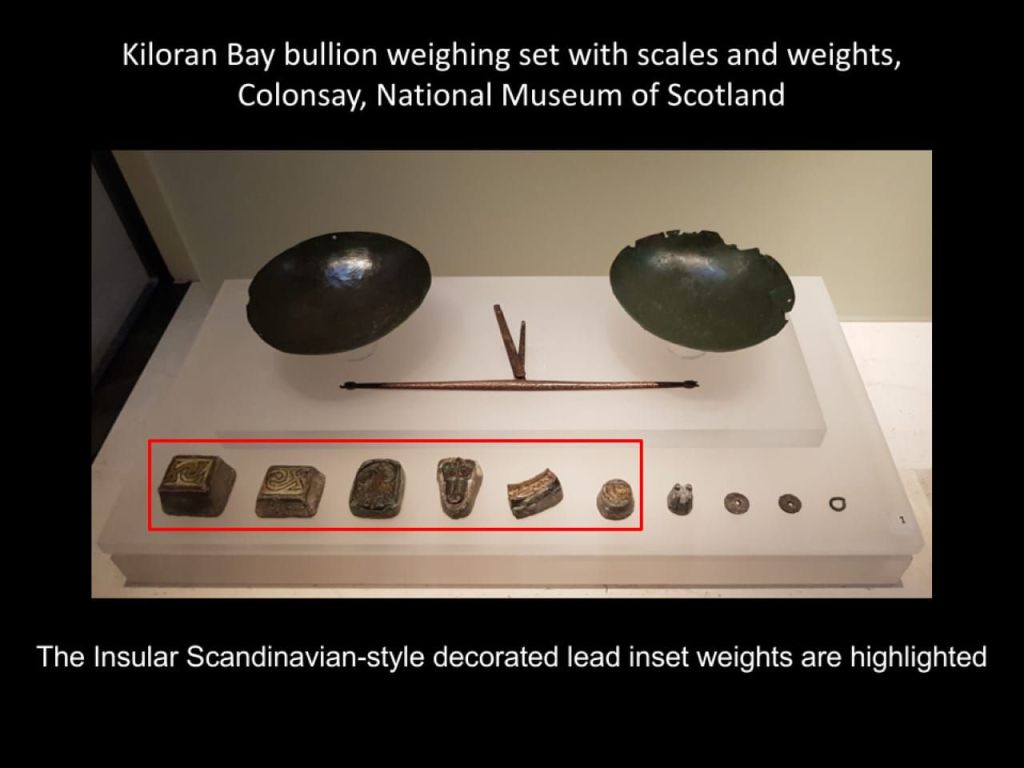 This provides a potential model for how a route segment (of a greater trade network) through a largely non-urbanised Irish Sea region worked. Here, natural harbours and traffic junctions were used as way-stations and temporary markets by nodal-market traders heading ultimately to Dublin, Jorvik, Kaupang or Hedeby, and also found patronage as part of second-tier Braudelian ‘tramping’ trade networks used by potential traders as that buried with an apparent bullion currency weighing set perfect for dirhams at Kiloran Bay.