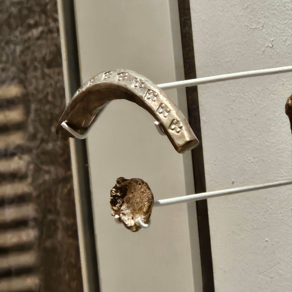 This pair of finds is listed under ‘Fragment of Viking Bracelet or Arm-Ring and a Disc’ found at Balmacolly in Bankfoot, Perth and Kinross. Originally reported to the Treasure Trove in Scotland, and listed as ‘2 fragments of Viking silver,’ they were then allocated to Perth Museum.