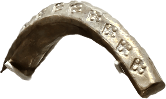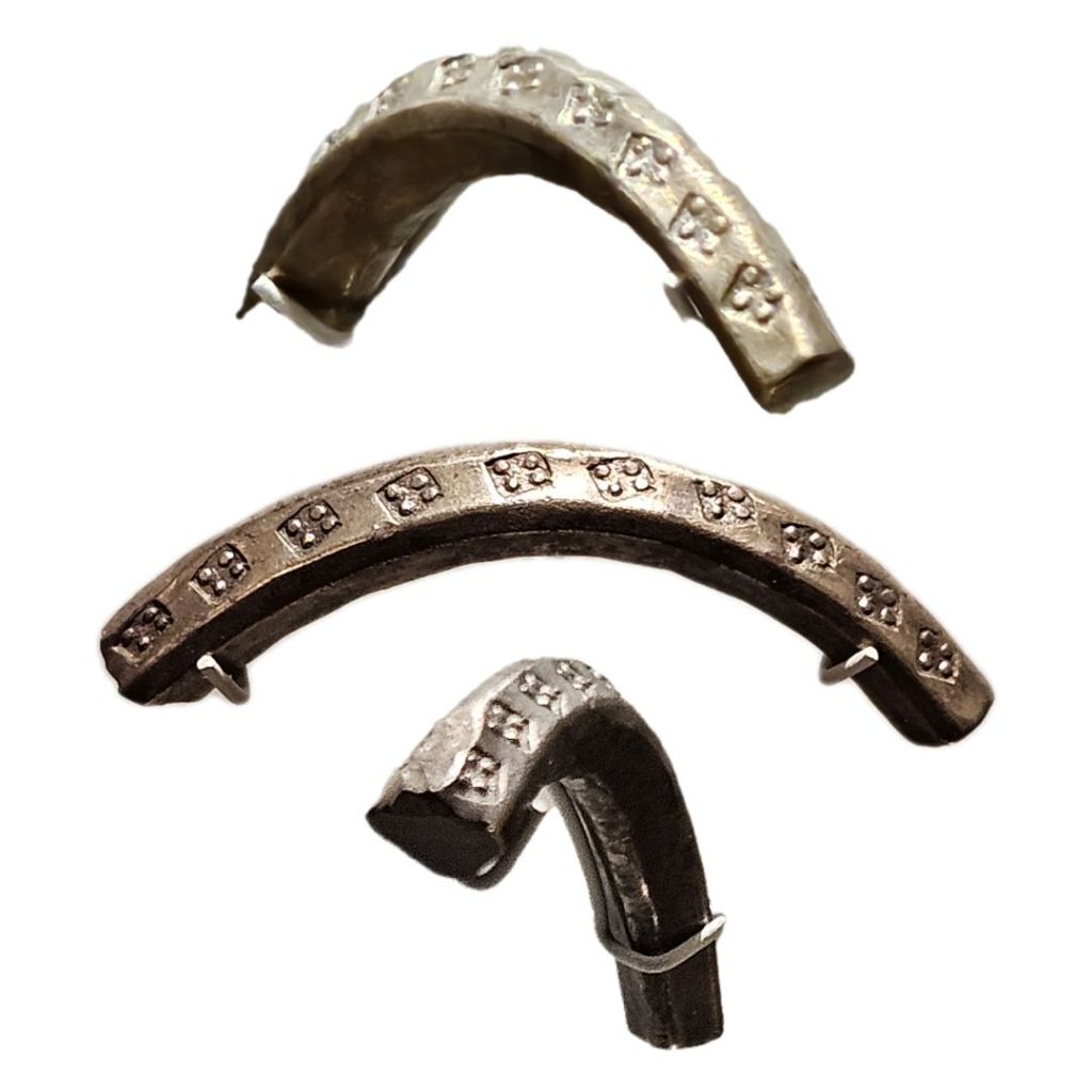 While we can never know if this fragment is from an annular or penannular ring, similarly stamped lozenge-shaped examples from hoards appear to be the former.