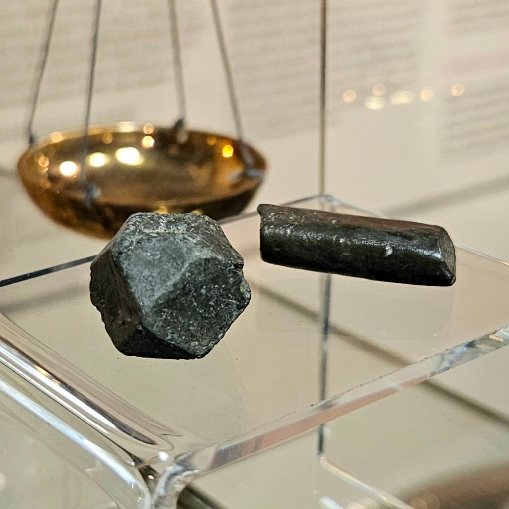 An example of one type of bullion weight, the cubo-octahedral, is shown below (we’ll return to these soon), alongside a piece of hacksilver ingot, found in Cowie and Dunblane in central Scotland.